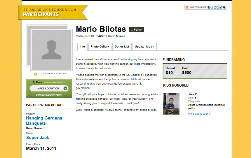 On March 11th as part of the Super Jack Team I will be SHAVING MY HEAD to honor the bravery and resilience of 5-year-old SUPER JACK, as well as his Mom (Vicki), Dad (John) and Sister (McKenzie).